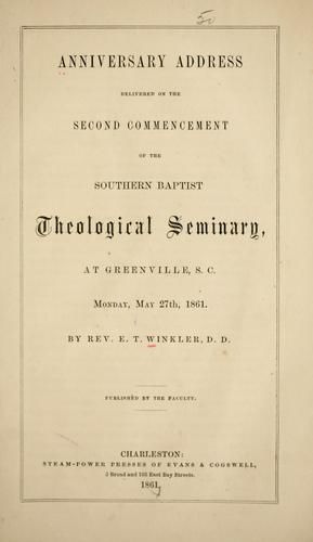 “When the second commencement of Southern seminary was held on May 27, 1861, great excitement prevailed in the seminary family. But the speaker of the occasion, Dr. E.T. Winkler of Charleston, did not even utter a word about the peril of the hour. Instead he commended the Seminary’s wise plans for the future and exalted the work of the ministry.”